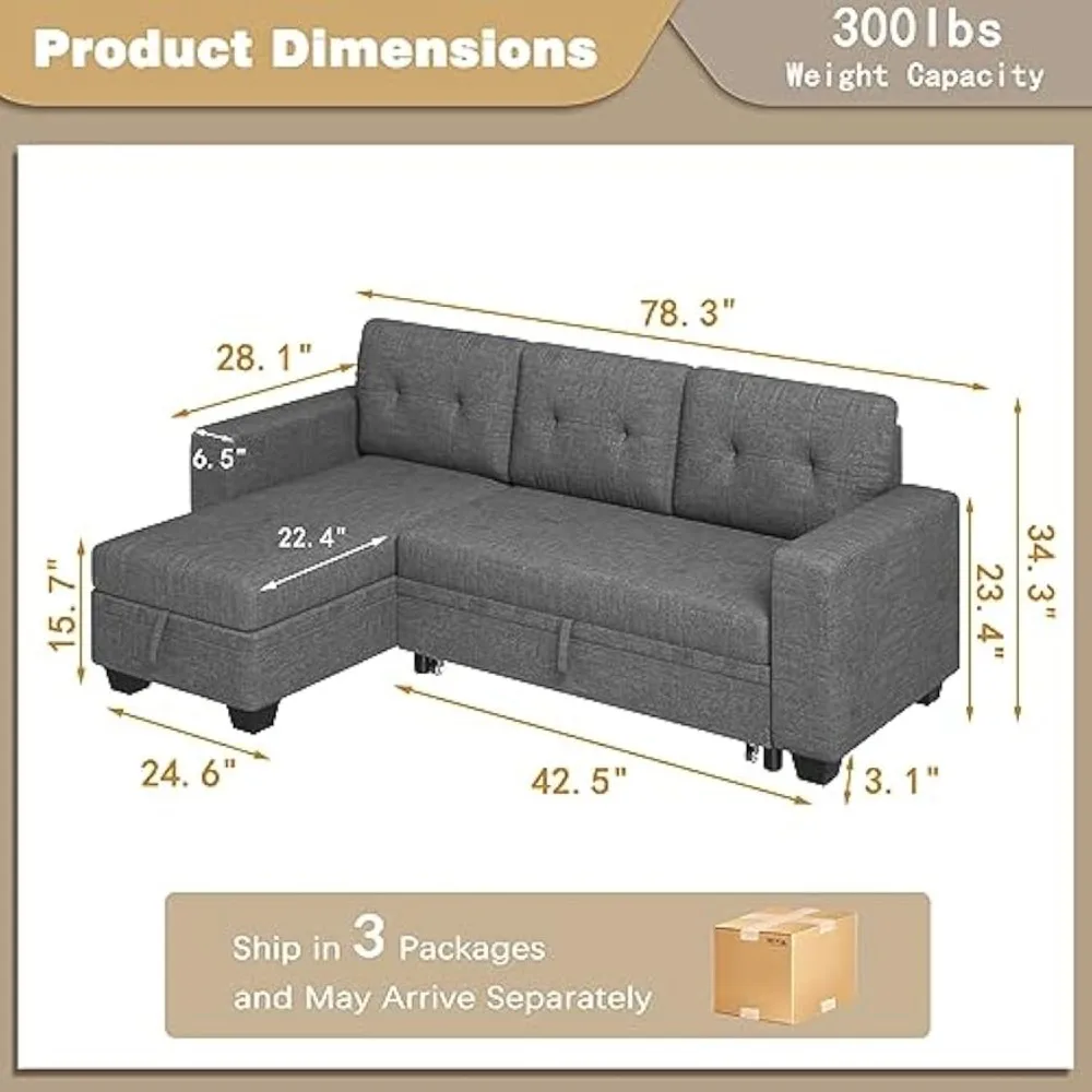 - Warmly Note: This L shaped futon sofa couch will be sent to you in 3 individual packages, and they may arrive in different time, if you want to know the tracking information of the packages, please contact us. Thank you for understanding. Due to factors such as shooting technology, light, and display, the color of the object may be a little difference from that of the photo. Please feel free to contact us for any product questions.