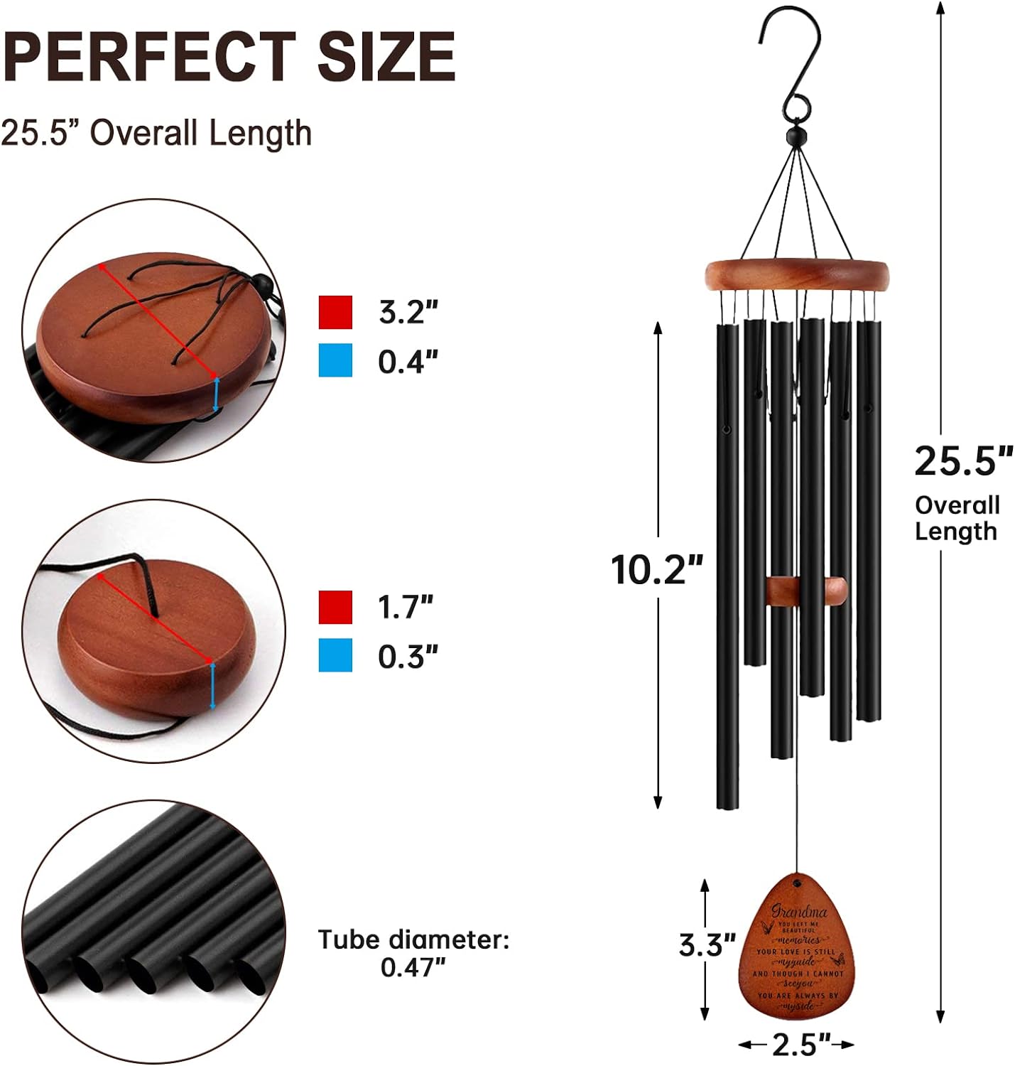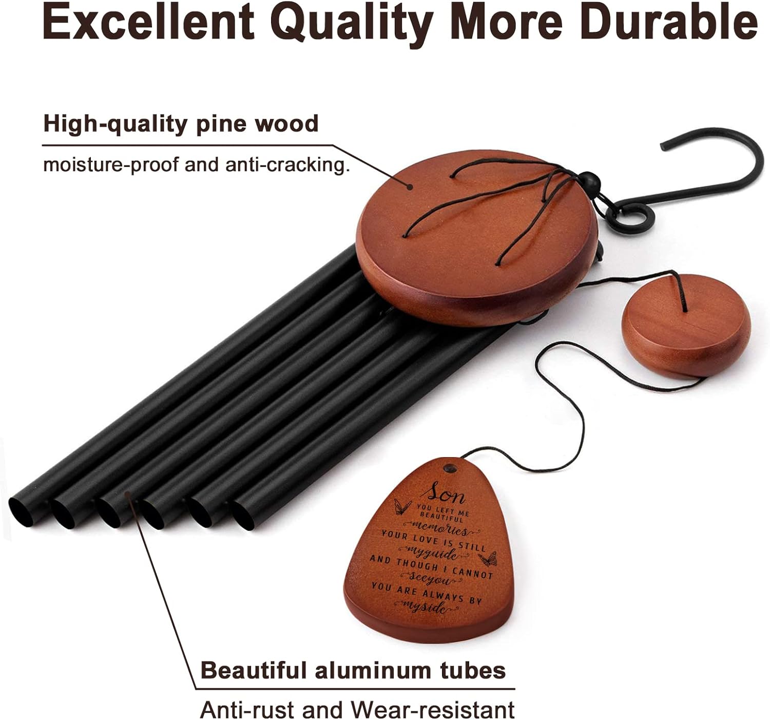 - Campanillas de viento de alta calidad: las piezas de madera están hechas de madera de primera calidad, duradera, excelente en resistencia y altamente resistente al desgaste. Los 6 tubos de aluminio anodizado son resistentes a la corrosión y engrosados para crear tonos profundos reconfortantes. Las campanillas de viento conmemorativas también se convertirán en una hermosa adición a un jardín conmemorativo o patio trasero.