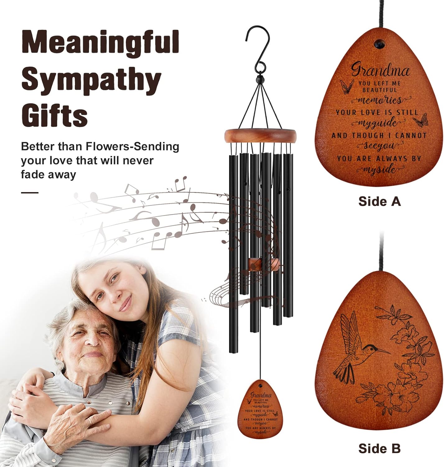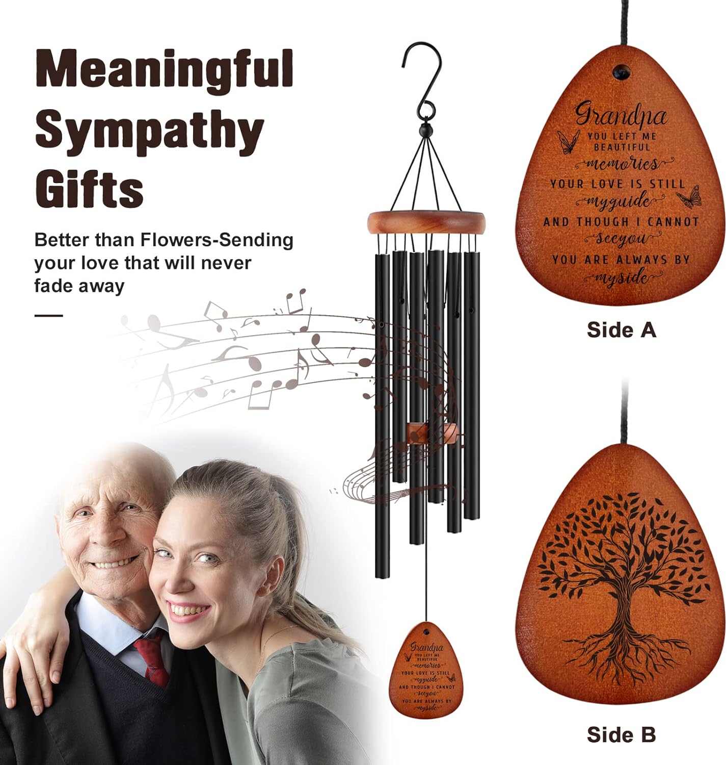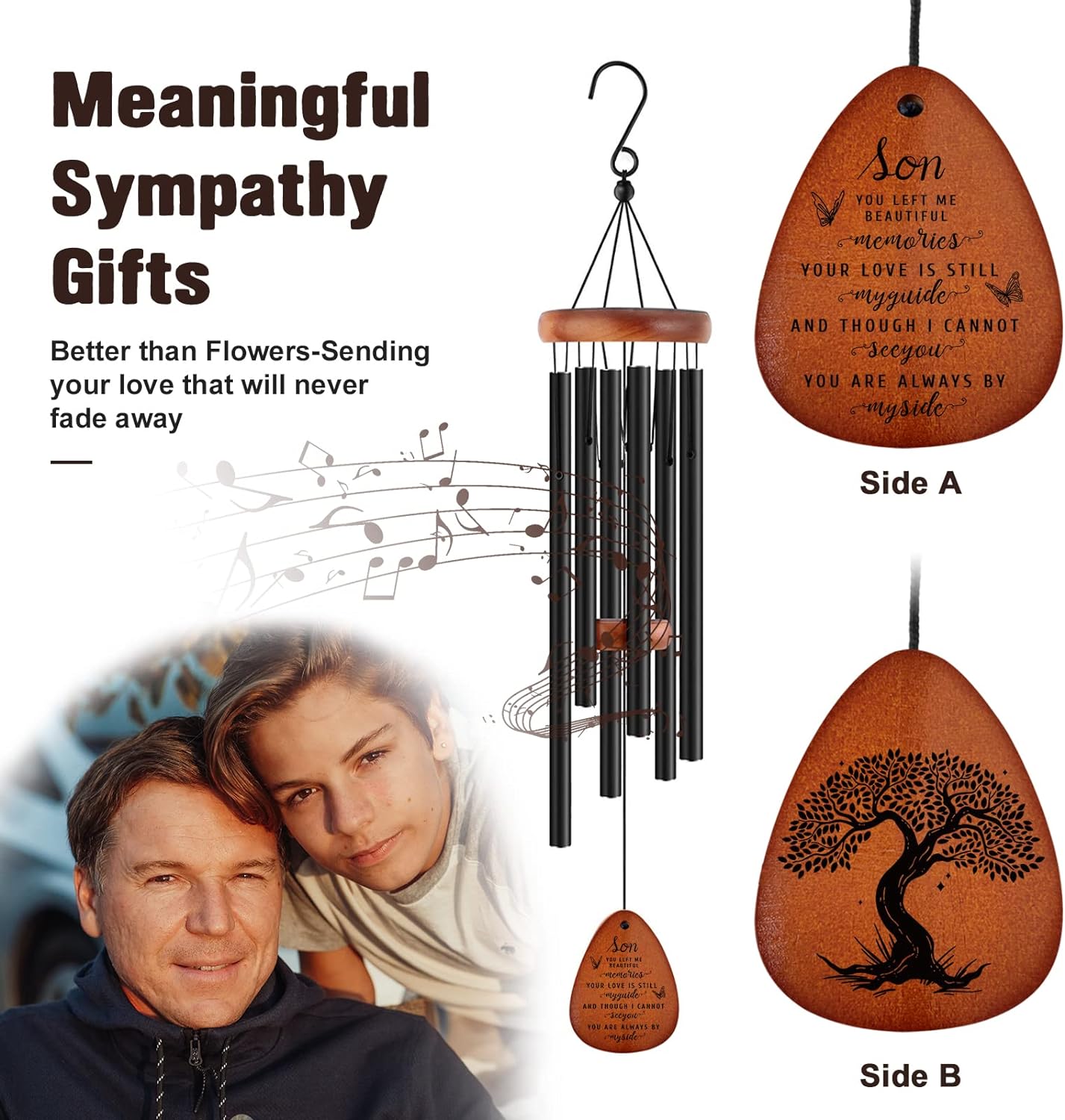 - Campanillas de viento para la pérdida de un ser querido: las campanillas de viento de simpatía vienen empaquetadas de forma segura en una elegante caja negra con papel envuelto y cada uno de los tubos de campanillas de viento protegidos en el interior. Junto con la campanilla de viento conmemorativa, hay una tarjeta de condolencia “Carta del Cielo” con una parte trasera en blanco para escribir tu mensaje de condolencia personal. Regalos ideales y reflexivos para el duelo para simpatía, condolencia y funeral.