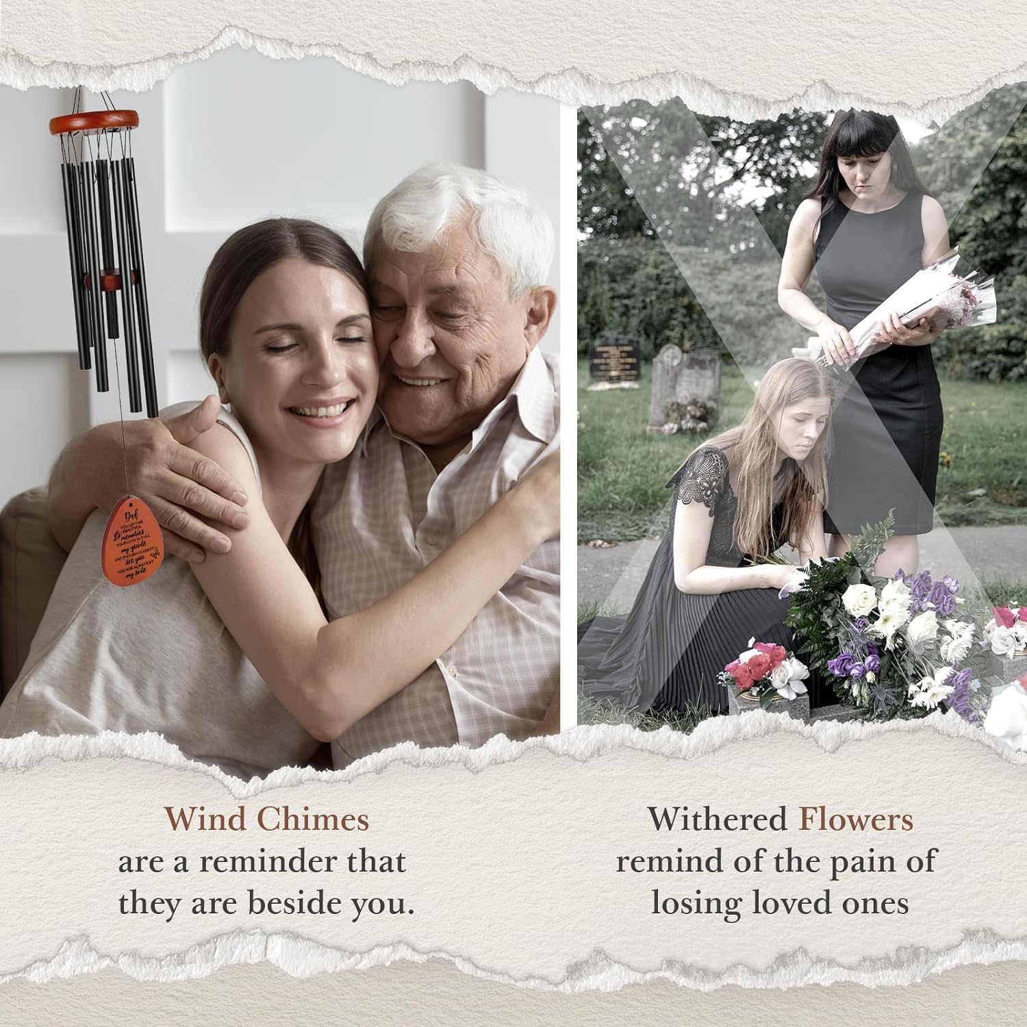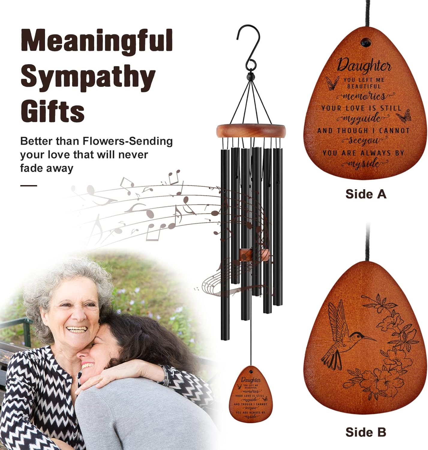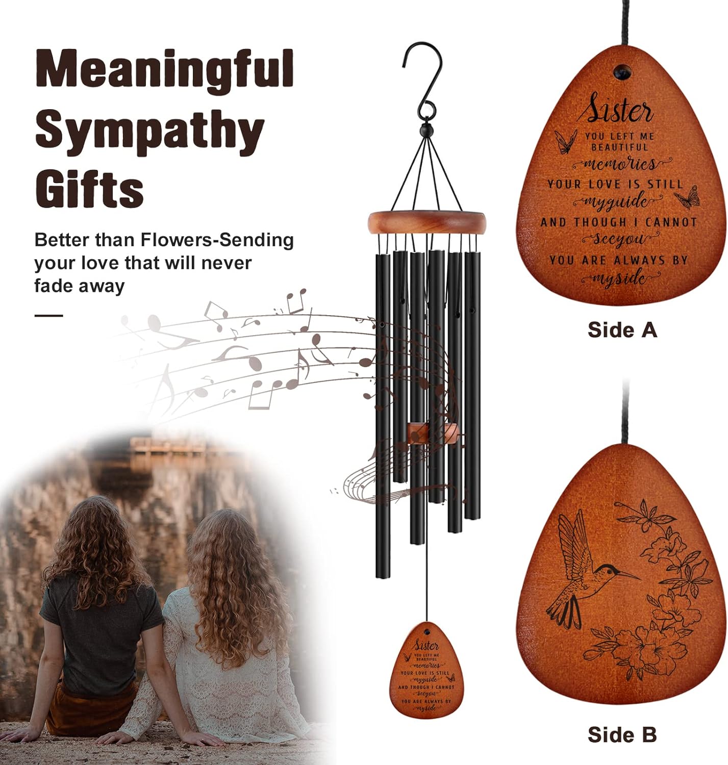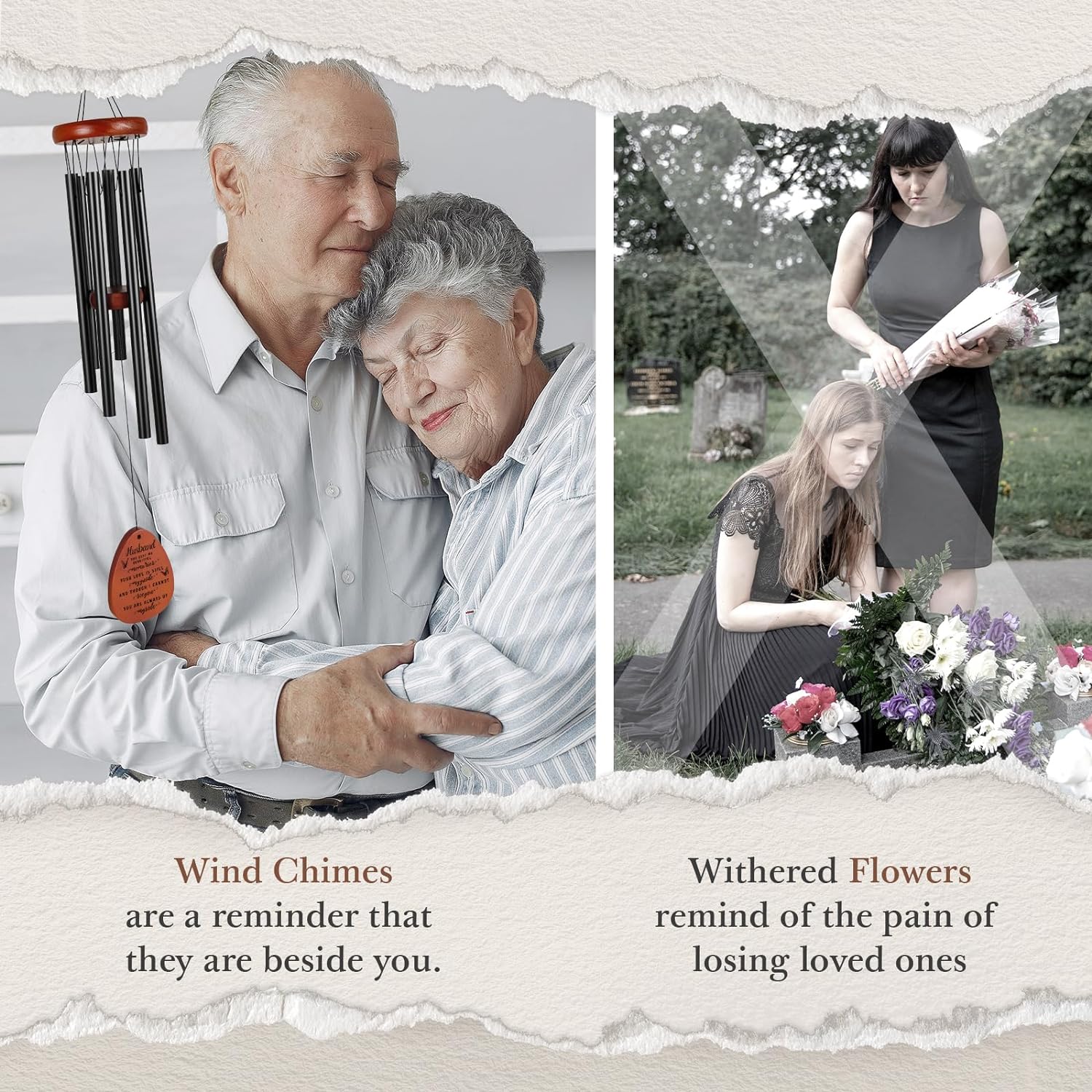 - Campanillas de viento para la pérdida de un ser querido: las campanillas de viento de simpatía vienen empaquetadas de forma segura en una elegante caja negra con papel envuelto y cada uno de los tubos de campanillas de viento protegidos en el interior. Junto con la campanilla de viento conmemorativa, hay una tarjeta de condolencia “Carta del Cielo” con una parte trasera en blanco para escribir tu mensaje de condolencia personal. Regalos ideales y reflexivos para el duelo para simpatía, condolencia y funeral.