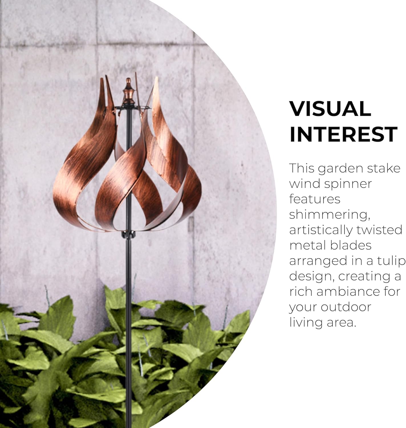 Stanwood Wind Sculpture Kinetic Copper Dual Helix SpinnerAdd to Cart Add to Cart Add to Cart Add to Cart Add to Cart Customer Rating 4.5 out of 5 stars (977) 4.6 out of 5 stars (274) 4.5 out of 5 stars (207) 4.8 out of 5 stars (193) 4.4 out of 5 stars (137) Price $69.99$69.99 $59.98$59.98 $119.99$119.99 $129.99$129.99 $364.95$364.95 Shipping FREE Shipping. Details FREE Shipping. Details FREE Shipping. Details FREE Shipping. Details FREE Shipping. Details Sold By Amazon.com PureEcho Welford Direct Cyan Oasis Oriental Touch LLC Color Copper Tulip Copper Teal Large Copper Tulip Copper Item Dimensions 17.72 x 17.72 x 70.08 inches 14 x 14 x 75.5 inches 18 x 18 x 84 inches 24 x 24 x 73 inches 24 x 24 x 90 inches Item Weight 7.00 lbs — 10.00 lbs — — Material Metal Metal, Iron Metal Metal Copper Size 70″ Height 75.5×14 inch-tulip — 24 x 24 x 73 inch One Size Product Description