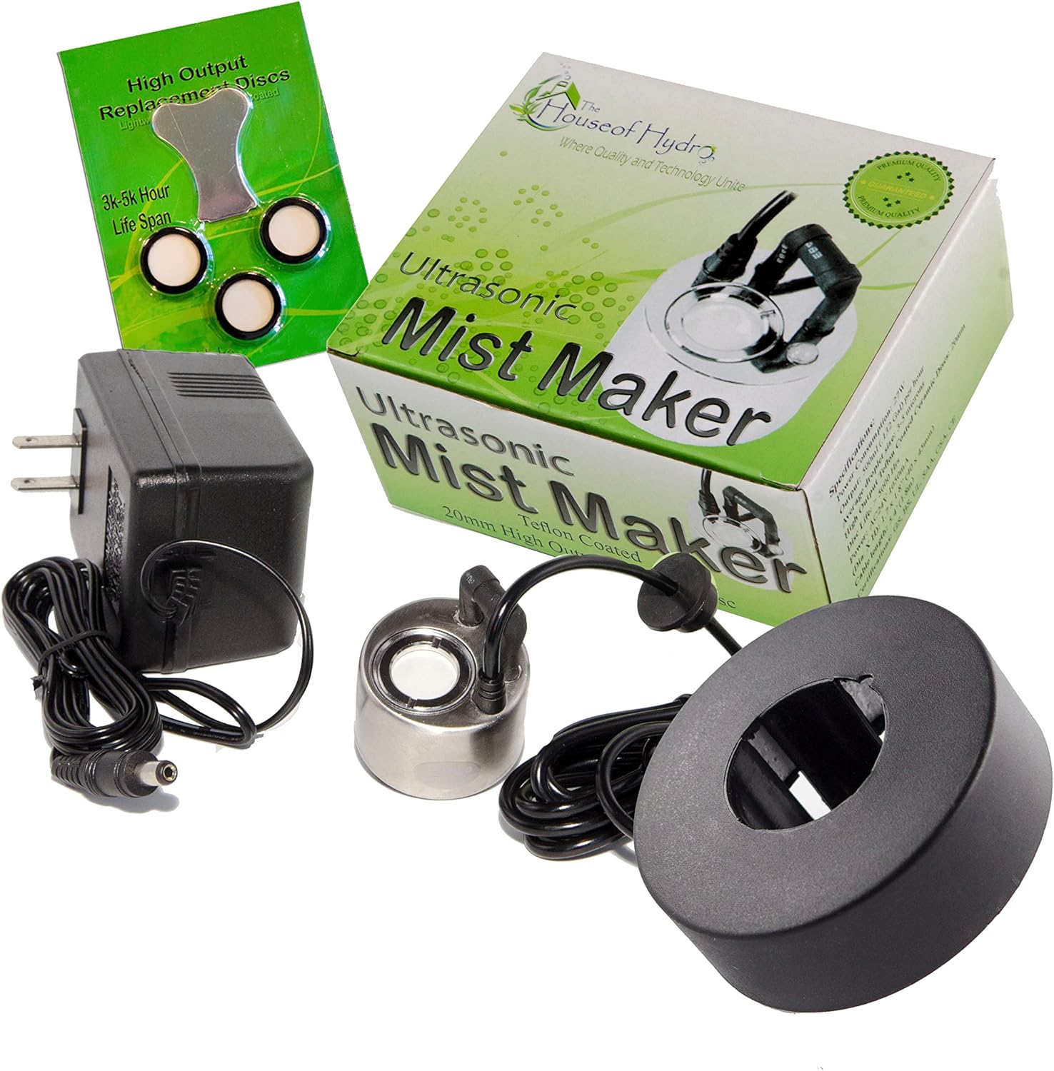 The House of Hydro Mist Maker Kit (Mist Maker, Transformer, Float, 3 Replacement Discs)
