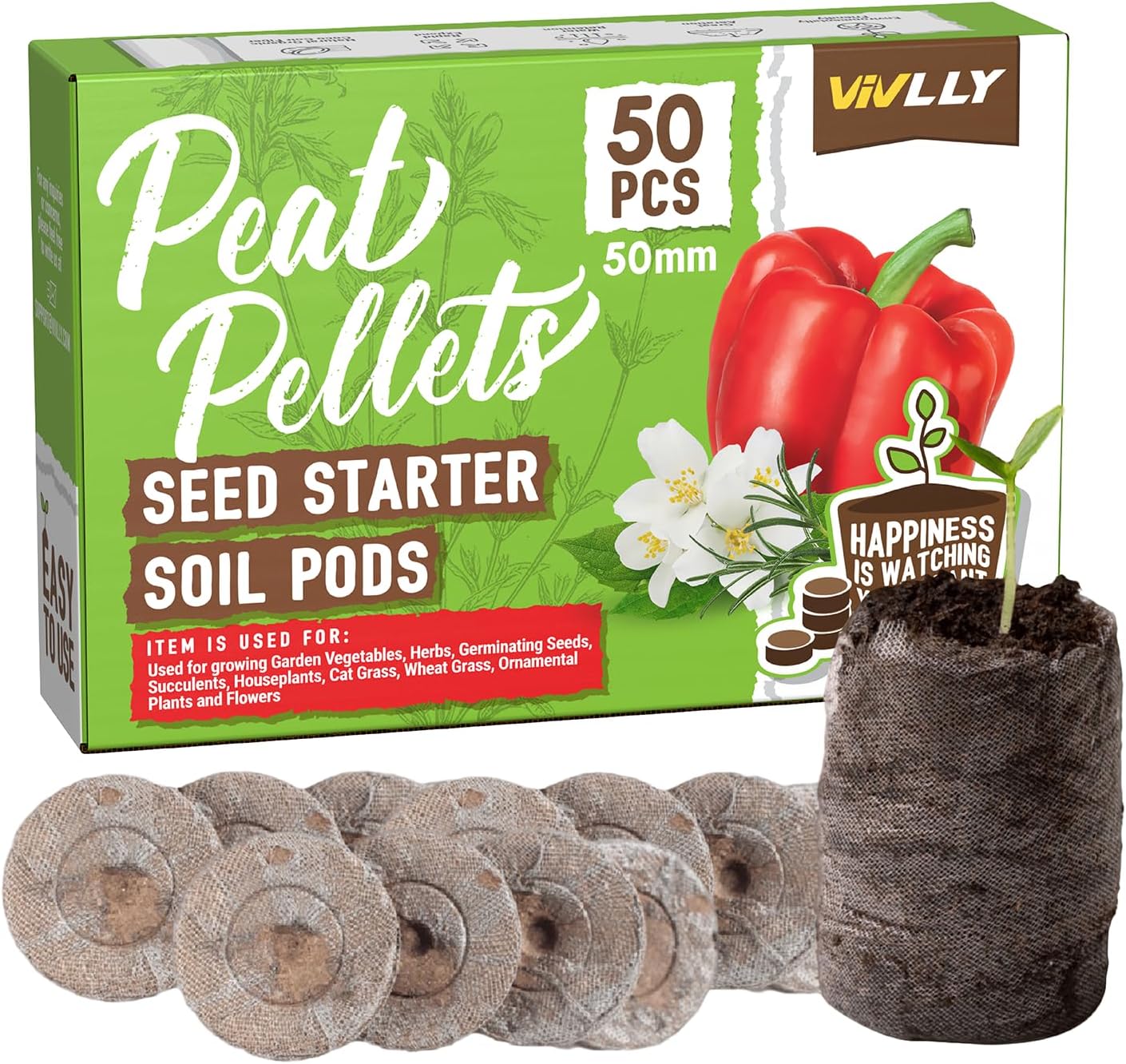 - EFFORTLESS GARDENING: Vivlly Peat Pellets arrive pre-formed and ready to use, simplifying the planting process and making it convenient for anyone and everyone. All you have to do is add water, then watch as they expand into a nutrient-rich base, ideal for the seed starting process.