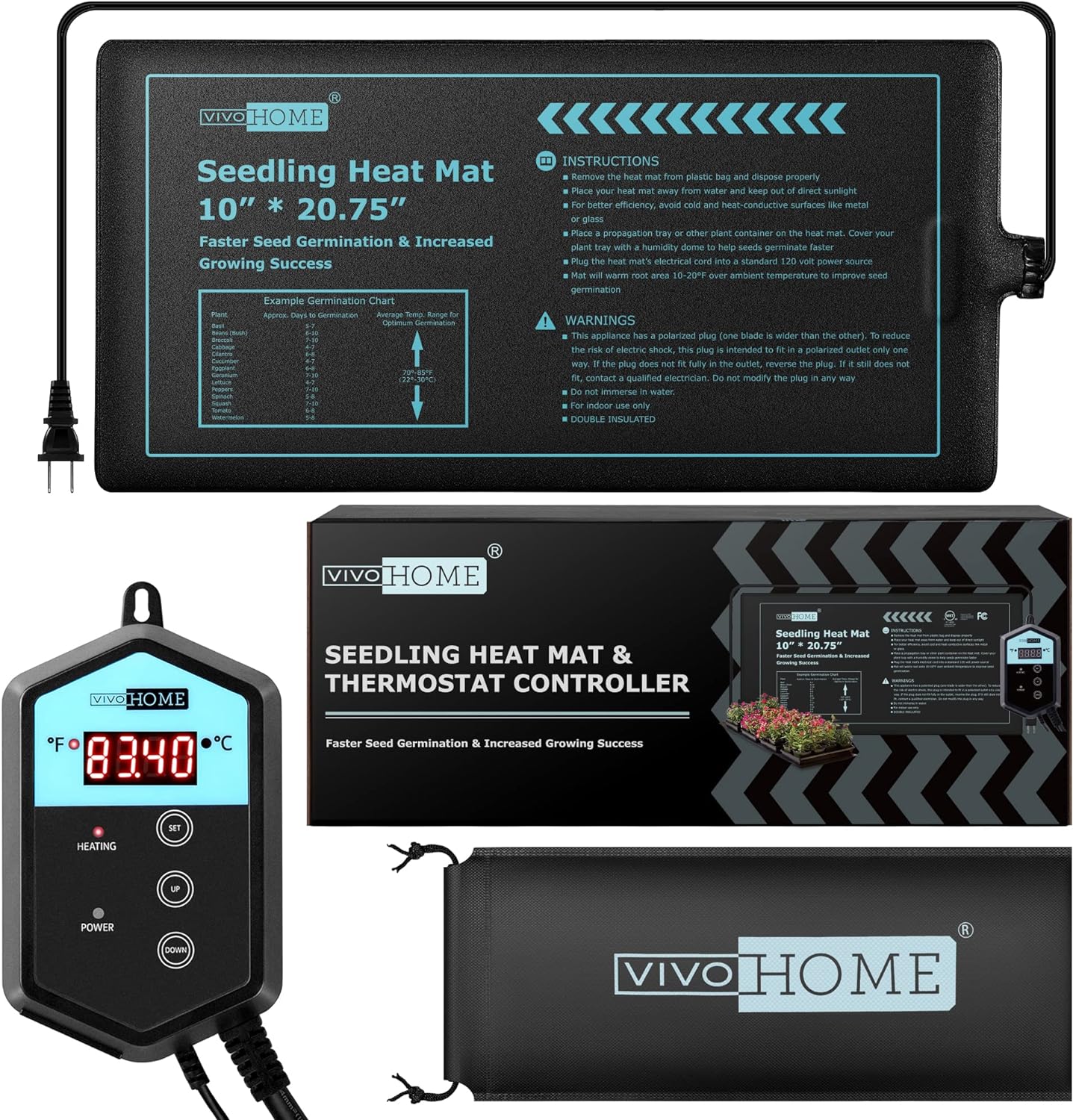 VIVOHOME 10 Inch x 20.75 Inch Waterproof Seedling Heat Mat and 40-108°F Digital Thermostat Controller Combo Set MET Certified