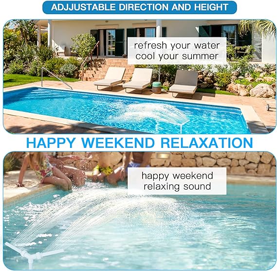- đăPool FountainăCreate a waterfall splash in your pool, circulates the water better and creates a nice soothing sound, the most practical and easy way decor your in-ground and above-ground swimming pool and patio, create perfect backyard ambiance.