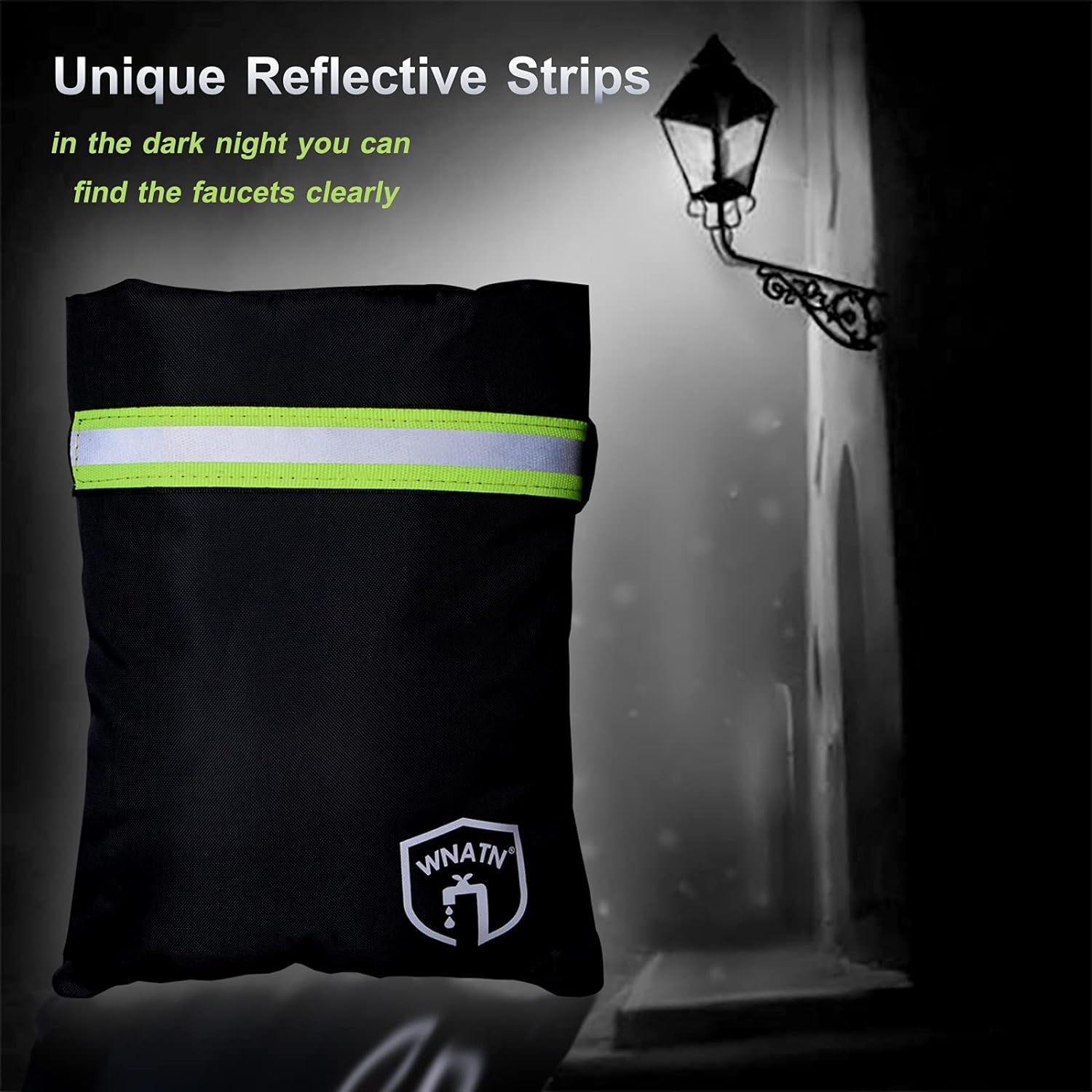 - ◆Unique Reflective Design◆:WNATN Outdoor Faucet Cover add the Velcro straps and unique reflective strips into the cover that can produce the strong reflected light ray to perform the warning function.In the dark night you can find the faucets clearly.Design of Velcro straps ensures a snug fit of the cover