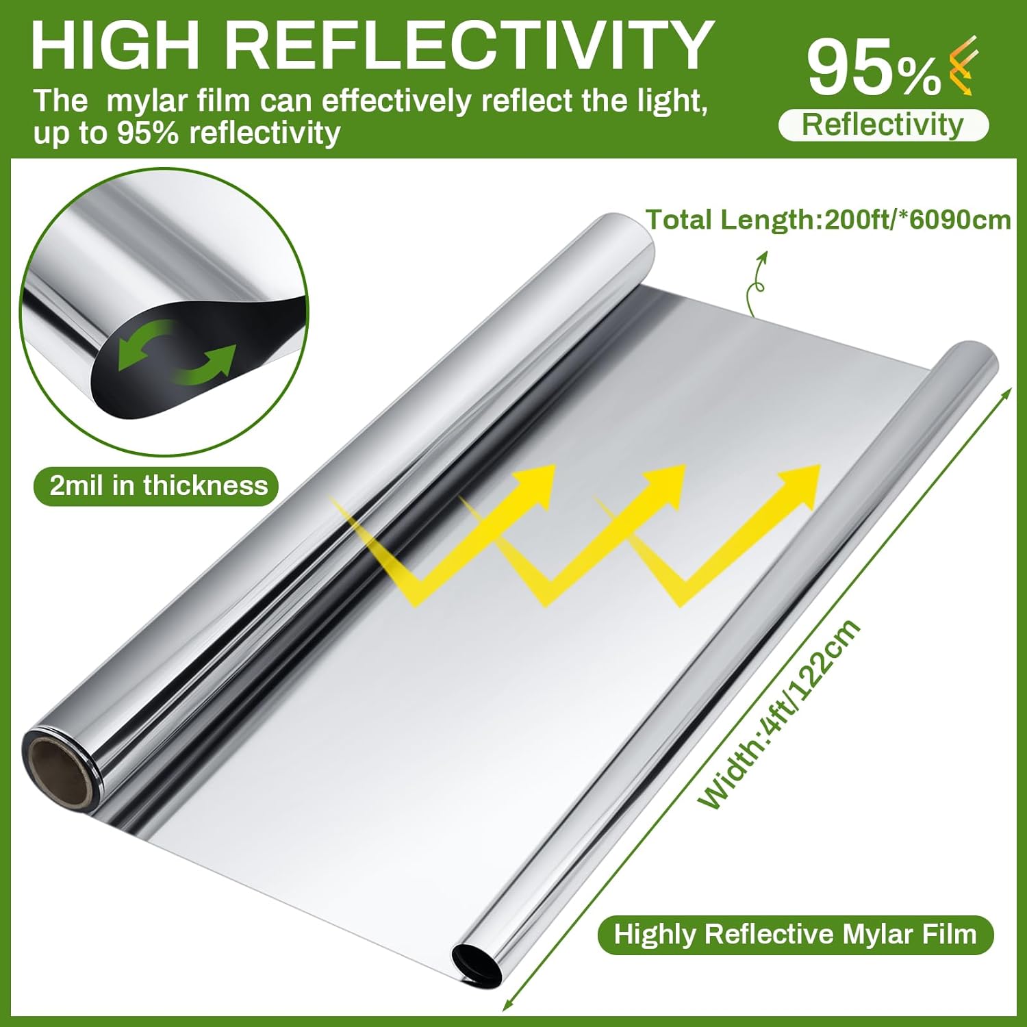 • Versatile Applications: the reflective film is ideal for a myriad of applications, thanks to its size, material, and ease of cleaning, you can use it in a range of areas from art and craft projects to horticultural use, such as warm house, greenhouse, grow tent, wrapping, and house decorations
