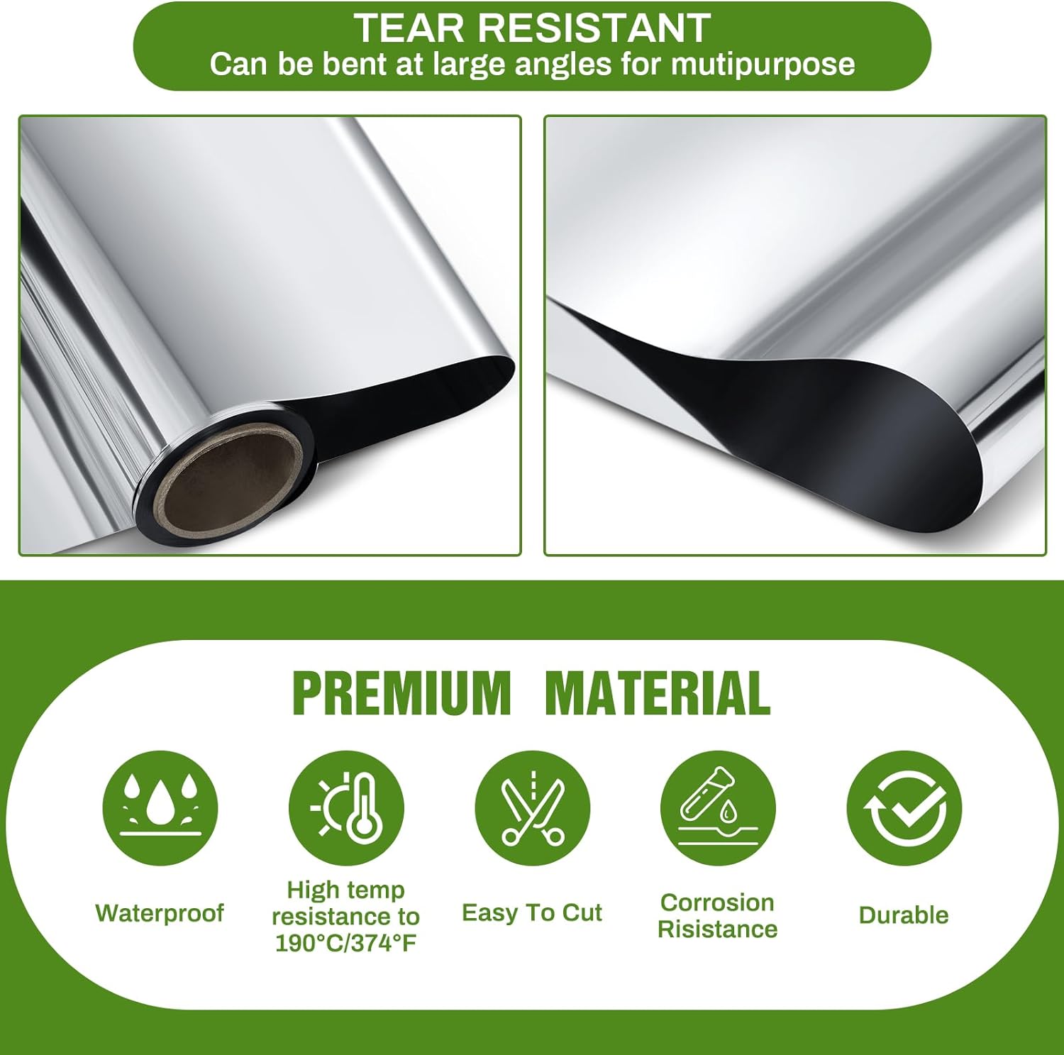 • Cuttable and Easy to Clean: this versatile aluminum paint coated film resistant to tear is not only reflective but also cuttable, plus, it’s incredibly easy to clean, adding a whole higher level of convenience; With our film roll, maintaining cleanliness with a damp cloth is as easy as a breeze