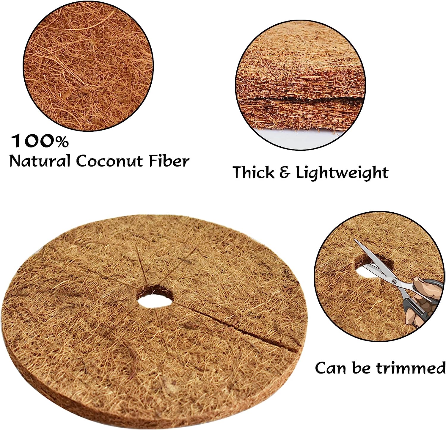 - Natural and organic tree rings: These tree protection mats are all made of natural coconut fiber, which is very thick, the fiber is evenly distributed, and durable, it can keep the soil moisture in the pot well.