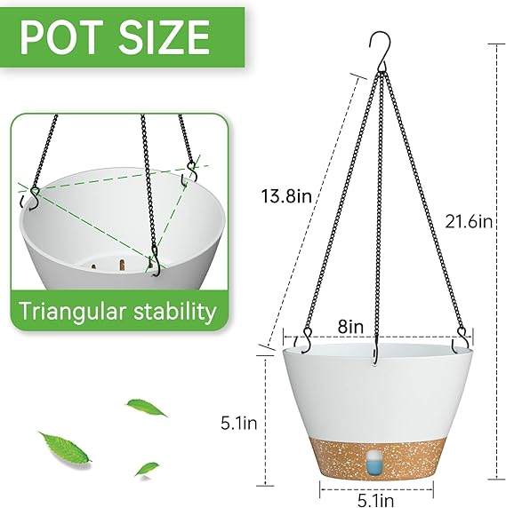 - Super load-bearing triangle chains: Made of stainless steel, the long triangle chain won’t rust in wet weather and is durable, and the surface is plated with an anti-rust coating to further protect the chain from damage. Besides, the triangle chain with super load-bearing performance increases the stability of the hanging planters.