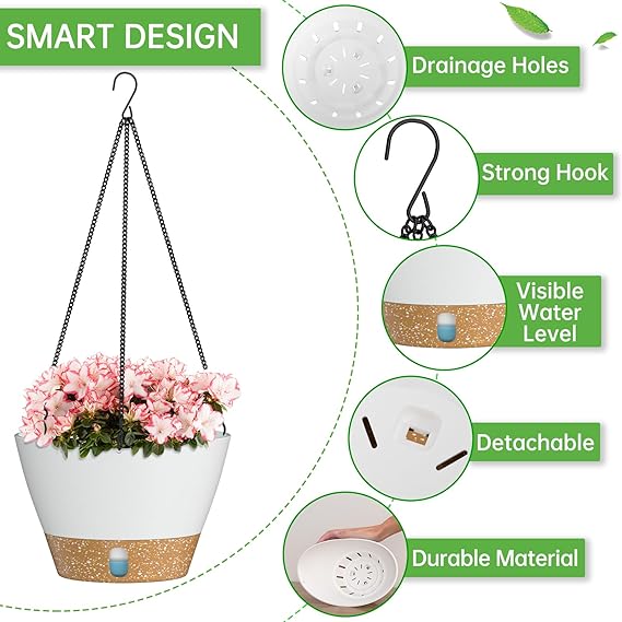 - Minimalist style plant pot: The minimalist style design makes the appearance and construction of the planter more unique among many flower pots, so this hanging flower pot matches well with indoor and outdoor plants such as flower succulent, ivy, herbs, ferns, philodendrons or other plants.