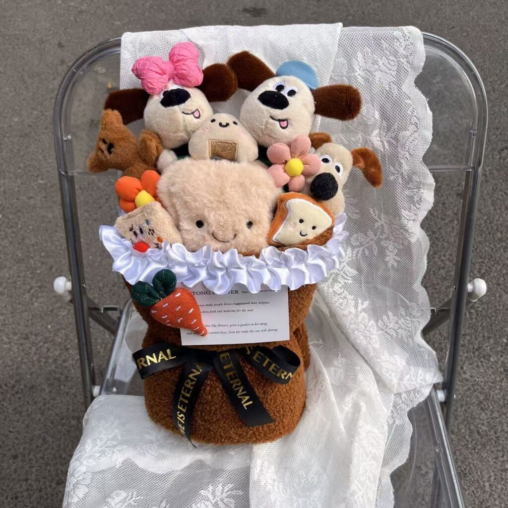 In addition to its appearance and practicality, the quality of this doll bouquet is also highly commendable. Each doll is made of high – quality materials. The soft fabric and delicate touch make people can’t help but want to hug them. They are fully stuffed and exquisitely made, without any loose threads or flaws, fully demonstrating the dedication and professionalism of the production team.
