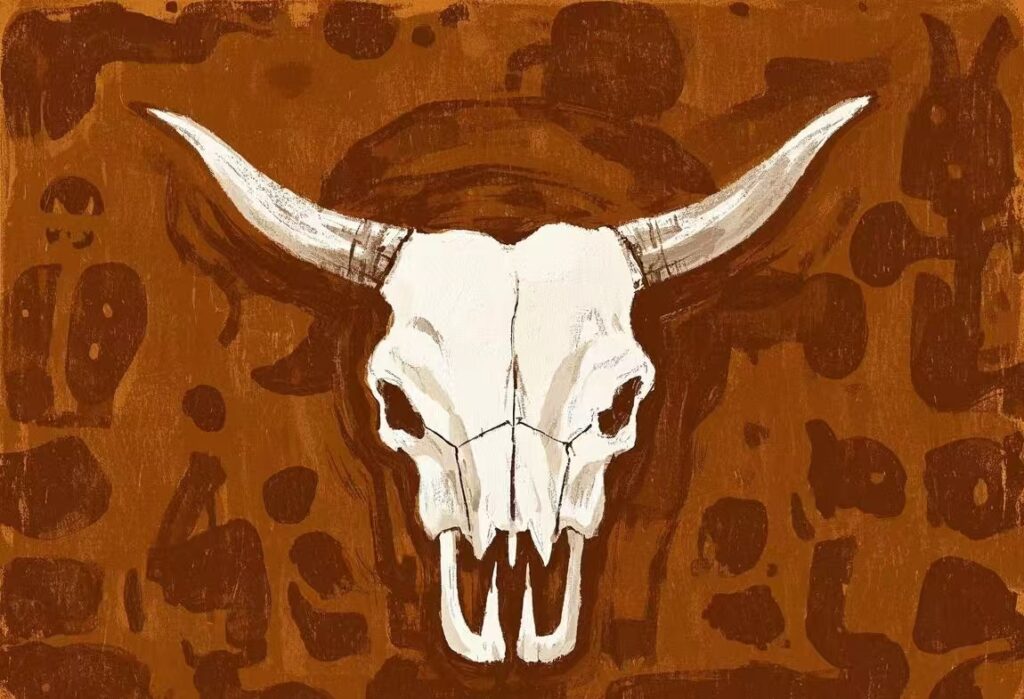 The cow skull represents strength, resilience, and the untamed spirit of the wild. In Western culture, it embodies the harsh beauty of desert life, while Native American traditions view it as a symbol of protection and spiritual connection to nature.